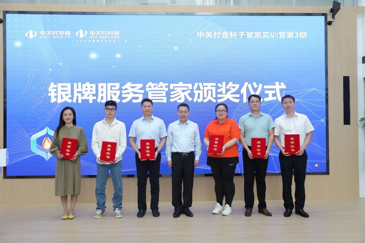 集團(tuán)副總經(jīng)理張金輝銀牌服務(wù)管家代表——中關(guān)村微納能源投資董學(xué)良、中關(guān)村延慶園梁少雄、工業(yè)設(shè)計(jì)研究院石冬花、中關(guān)村軟件園孵化器胡寶文、中關(guān)村協(xié)同發(fā)展錢哲、中關(guān)村協(xié)同創(chuàng)新基金韓娜頒發(fā)了獲獎(jiǎng)證書。